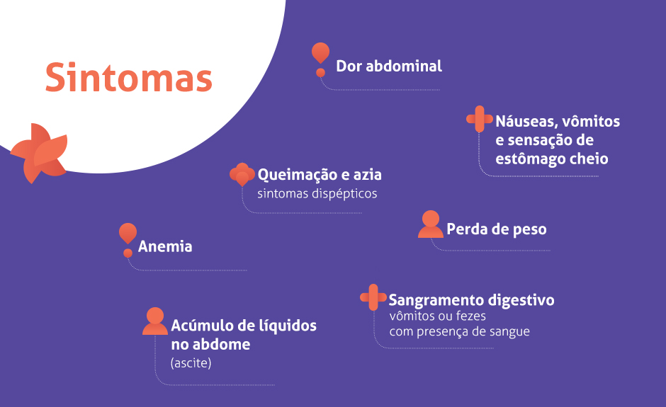 Alguns sintomas frequentes do câncer de estômago são: